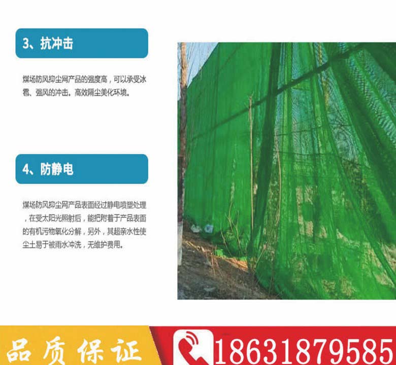 1、防风抑尘网抗紫外线(耐老化)产品表面经过喷塑处理,能吸收太阳光中的紫外线,降低了材料本身氧化速度,使产品具有较好的防老化性能,使用寿命提高。